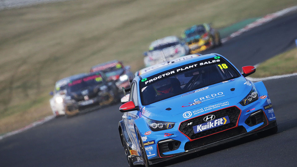 An exciting start to the BTCC weekend saw Proctor expertly take avoiding action from Tom Oliphant (Team BMW). Consequently, he lost a few places, but was not prepared to hold back, immediately closing in on the battle for seventh with Tom Ingram proving the cork in the bottle for the Scorpion-sponsored Hyundai. Smiley meanwhile was struggling with the extra ballast on board yet was still able to show off his defensive prowess.